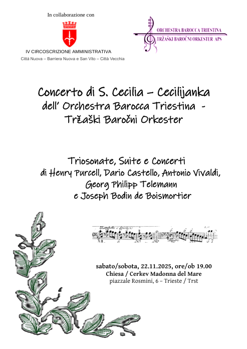 22/11/2025 Concerto di S. Cecilia – Cecilijanka 19 Novembre 2025 Dell’ Orchestra Barocca Triestina -Tržaški Baročni Orkester